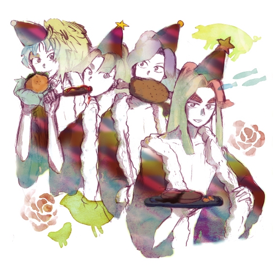 (具体的なネタバレはしないよ!) なんだこれなんだこれたまらんちょう楽しかったです!! しあわせです!!さと子さんほんとありがとう~! 会場一体で楽しんでた! 金曜に見たんでもう一日以上経つのですが、 記憶を脳から逃がさないように必死>< 原作ファンアニメファンのことを本当に良く考えていて、 各キャラに対する愛情がすごい作品でした! (こういう行動するかな?みたいなとこがちょーっとだけありましたが、 別に大きな違和感ではなかったですし、新たな1面と見ることもできました!) 皆かっこいい皆かわいい!! キャラが舞台に立ってるという感じでかっこいいし中の人としてかっこいいし! すでに中の人が気になっていて、ブログみてしまう。 忍たま好きでよかった~!大変しあわせです! 千秋楽もチケ買えたので行きます^^w 行くか迷ってる人は絶対行ったほうがいいと思います~うざいくらいすすめてごめんなさい 私実はそんなに期待してなかったんですが、はるかに予想を越える楽しさだったので! DVDとかで見るのとは一体感が違うはずだしね 4年(代理)が観劇して感激したレポを手ブロあたりでかきたいです(ネタバレカンソウタグだね)あーでも自己満足でしかないからな…わからん PR 今年も宜しくお願いします。【虎ちゃんタカ丸、寅さん綾部、タイラース平滝夜叉丸、ラムちゃん虎ブラ三木ヱ門】 昨年は自分たちとしてはたくさんサークル参加できて 幸せでした!いろいろ反省もしなきゃですが、楽しかったです~! 忍たまのびっくりニュースもたくさんあったしね! ここをみてくださっている方々、いつもありがとうございます。 今年も宜しくお願いします!!^^* 昨年以上ににんにんできたらいいが! TOP冬仕様にしました。 絵ページ最近全然更新してない。。 近いうちに更新します! 冬コミも行ってきました一般で!相方uwoと一般で繰り出すの初めてだった笑 すっごい楽しかったです。構ってくださった方々ありがとうございました!!! でも実は戦利品まだ全部読めてない。。じっくり攻める! ---------- イラストは住所知ってる喪中じゃなさそうな忍友に送った年賀状絵、 これから送る方もいます~遅くなってすみません 年賀状は微妙に切り絵にした おまけ2009最後に描いたイラスト(タイラーウッズ) 年末メリークリスマスでした!! 肉食男子・草食男子 四年生と五年生なんとなく対になってます。 ハンバーガー・フランクフルト「ん…」・漫画肉・「私がメイン、ステーキオプション」-------どんべえ・大根・ネギ・土鍋・豆腐鏡餅の準備 です。 また日記開けちゃったです ちょっといま余裕ある…よ! ドラマCD{… やさしいタカ丸の声が耳に残ってるよほわ 十忍十色参ありがとうございました!!+バトン11/23十忍十色ありがとうございました!!!